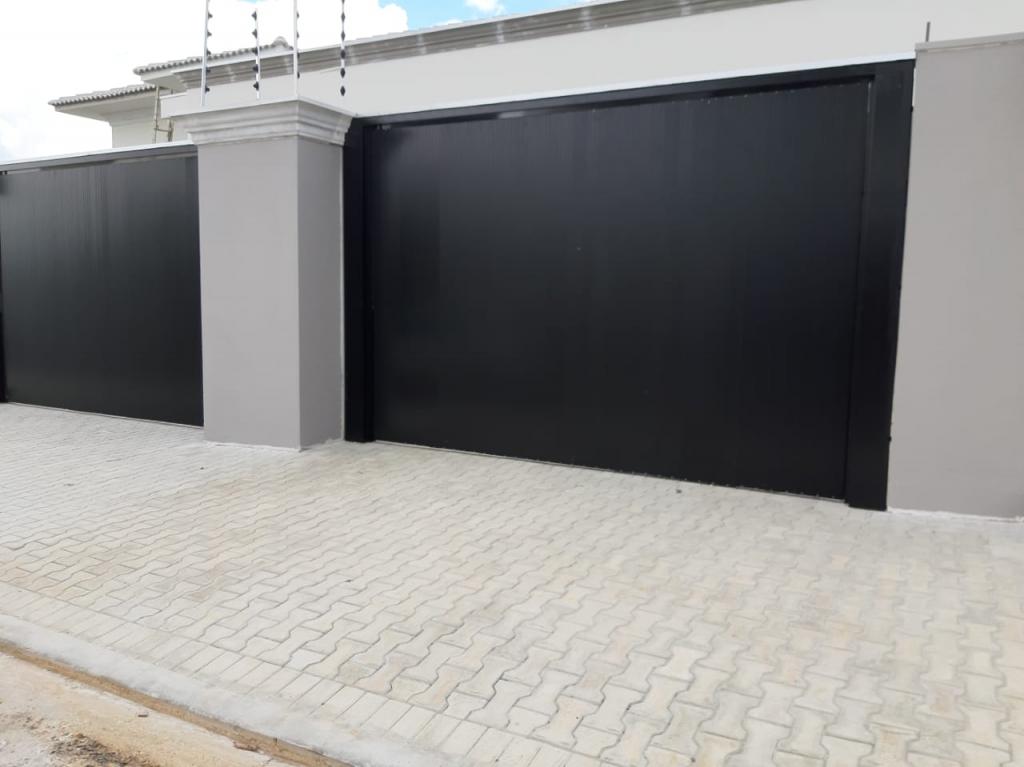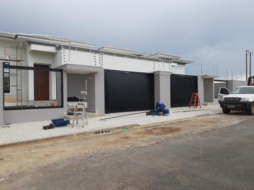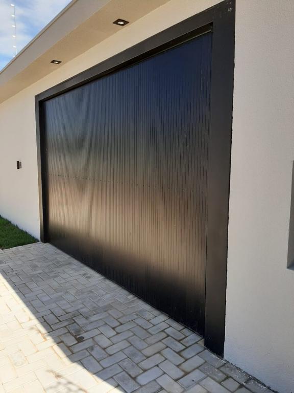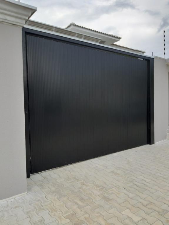 Portão com estrutura de ferro e apenas o revestimento em Aluminio.